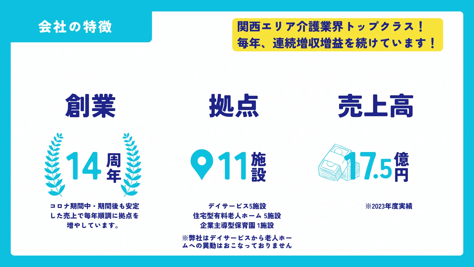 ご利用者様のことを考えた前向きな企画や提案は即採用、即実践する環境です。新卒でも積極的に意見を出し、より良くしたい姿勢を応援します。
