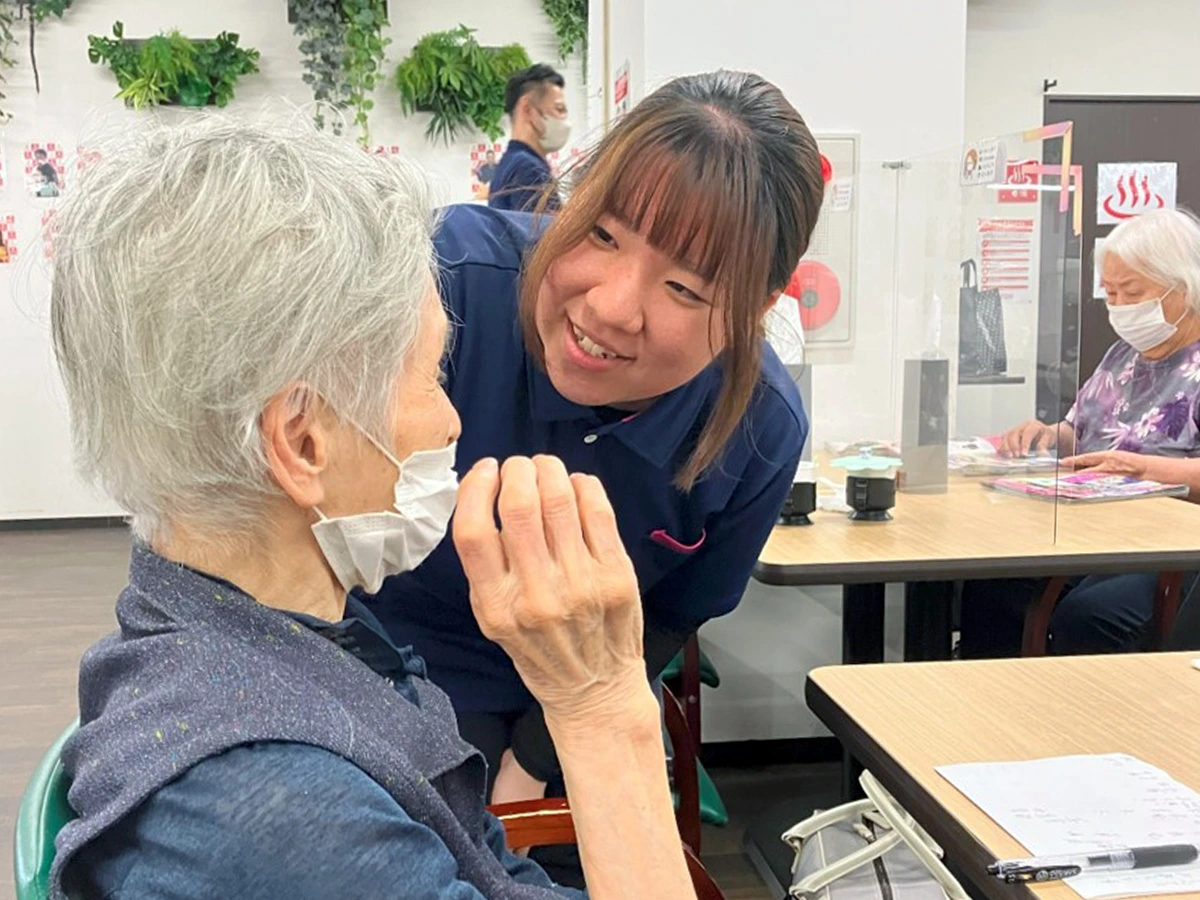 ご利用者様は「要支援~要介護2」の軽度な方ばかりです。だから介護の専門学校に通っていない方でも、「誰かの役に立ちたい」という思いがあればスタートできます。