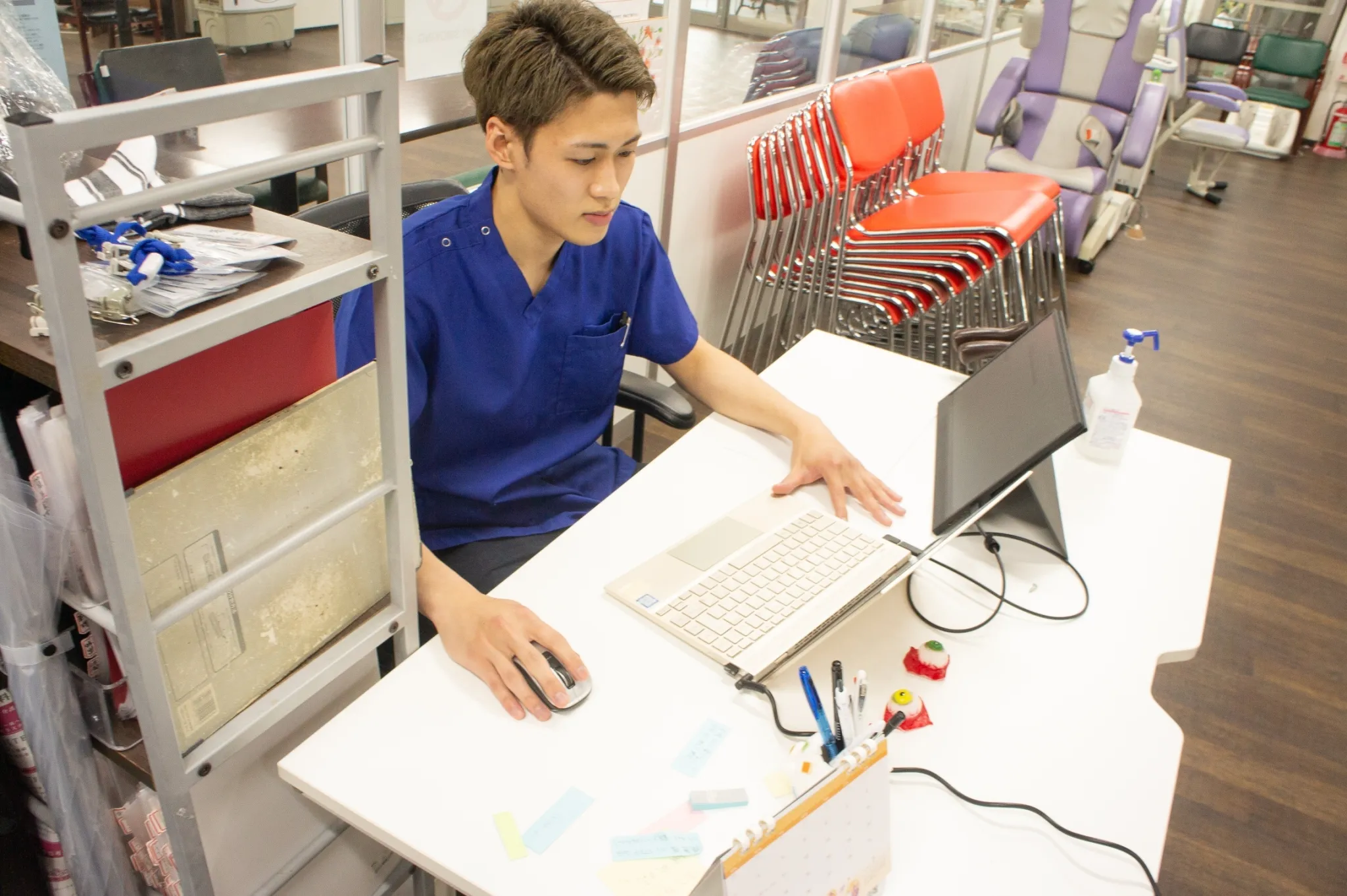 ちょっとした不具合などは、事務員がすぐに対応できます。また本部との連携により、備品不足や古いものを使い続けることはありません。